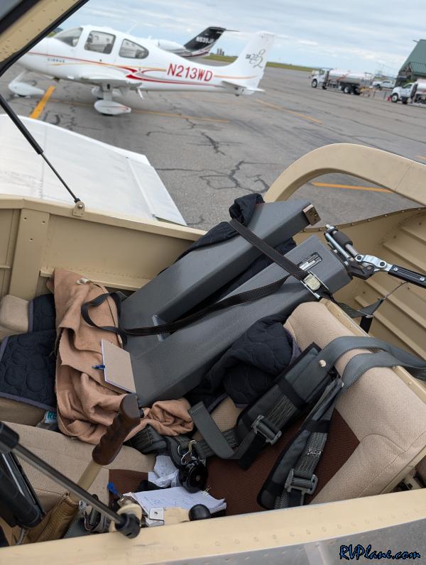 I hit a milestone today - 1,000 hours on the RV! It's been close for a while as I haven't been flying that much. Today's mission was a short flight up to Lancaster, PA - I bought a DRDT-2 tool off of VAF Classifieds and the 20 minute flight seemed way better than a 90 minute drive! I've had some amazing adventures with the RV in the last 1,000 hours and am excited to see what the next 1,000 offers! This airplane has been more than I could ever wish in an airplane. It just does everything so well! When I finished building the RV, the ONLY tool I sold was the DRDT-2 dimpler. Every now and then I wish I didn't sell it. They don't come up for sale all that often, and they certainly are not simple to ship. This one was close, and as you can see, easily fits into the RV! I did need to add quite a bit of aileron trim on the trip back! Great day, great way to hit 1,000 hours!