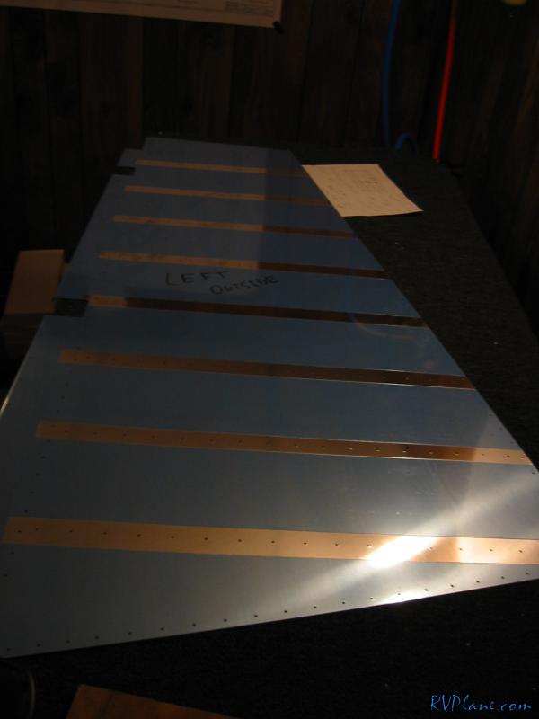 I devinyled the skin on the rudder tonight where the stiffeners are back riveted. It seemed like this took forever.